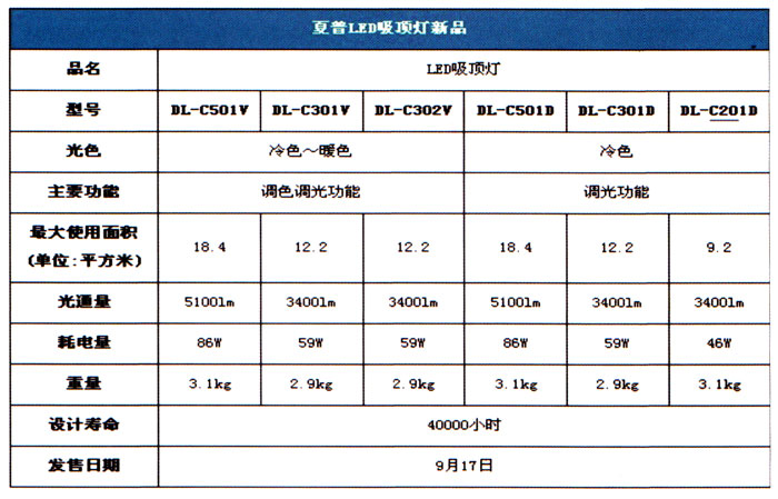 夏普將在業界率先發售6款家庭用LED吸頂燈。本產品搭載夏普獨有的光散射技術,實現了厚部位也只有43mm、薄部位僅為8mm的薄型設計。