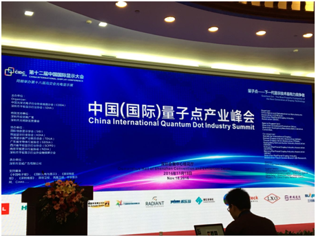 2016年11月18日,公司參加在深圳召開的中國(國際)量子點產業峰會。通過這次會議的學習和交流,跟蹤了解了液晶行業發展變化,同時為量子點顯示及材料的開發研究及后續生產奠定了一定的技術基礎。