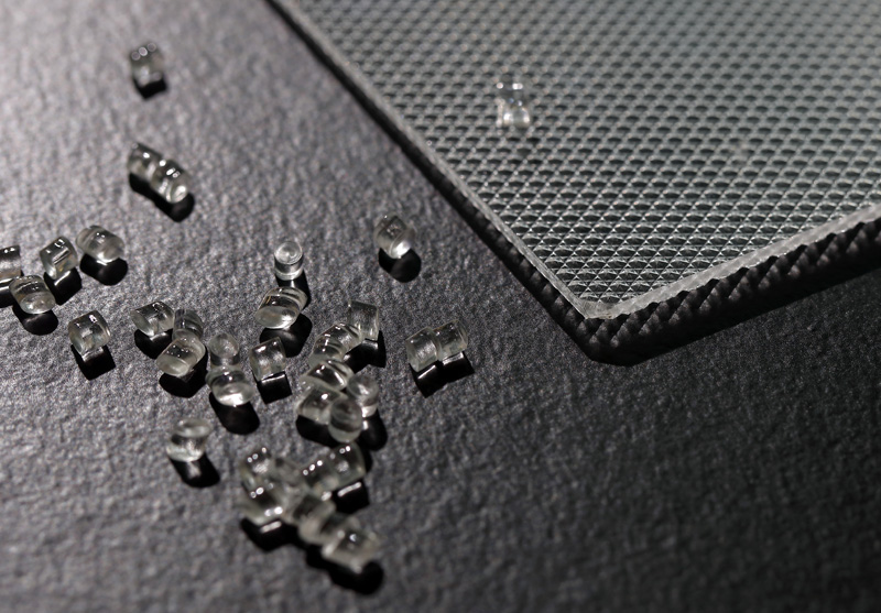 應用超精密模具加工,結合光學結構設計技術開發的微結構導光板,產品厚度覆蓋1~3毫米,提供不同微結構尺寸滿足不同客戶的模組要求,產品有效地提高了光傳導性效率,增加3~5%的背光源輝度,同時可有效降低背光源厚度,減少光學膜片的使用,是高效背光源應用的選擇。